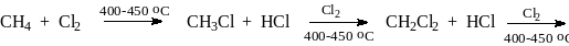 Хлорметаны производятся в промышленности в весьма значительном количестве. В США, например, ежегодно производится около 320000 тонн СН3Сl, 350000 т CH2Cl2, 18000 т CHCl3 и 370000 т CCl4. Один из методов получения этих соединений заключается в прямом хлорировании метана в газовой фазе при 400-450°С.
