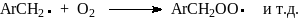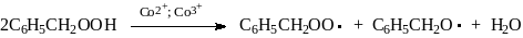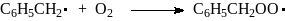 Бензил-радикал при взаимодействии с кислородом дает пероксид-радикал, достаточно активный для того, чтобы при взаимодействии с толуолом превратиться в бензилгидропероксид и новый радикал: