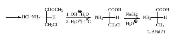 Примечание 2. В настоящее время разработаны и широко используются в практике синтеза аминокислот методы межфазного алкилирования оснований Шиффа, получаемых из эфиров аминокислот или аминонитрилов и бензофенона.