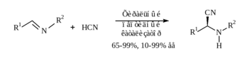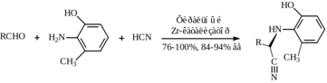 В последние годы большое внимание уделяется асимметрическому варианту синтеза Штреккера в присутствии хиральных катализаторов (некоторые пептиды или хиральные катализаторы на основе алюминия или циркония).