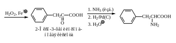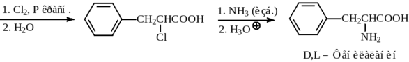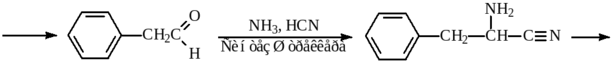 в) Метод Штреккера (синтез -аминокислот из карбонильных соединений). В синтезе фенилаланина по Штреккеру исходят из фенилуксусного альдегида.