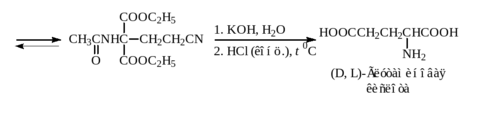 д) Получение -аминокислот алкилированием амино-, амидо- и имидомалоновых эфиров. В этом случае сначала получают необходимые N-замещенные малоновые эфиры, затем их алкилируют в присутствии сильных оснований (этилат натрия, гидрид натрия); продукты алкилирования гидролизуют в кислой среде при нагревании до соответствующих -аминокислот.