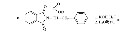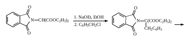 Синтез фенилаланина с использованием фталимидомалонового эфира включает следующие стадии: