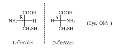 3. Для L-цистеина (группа CH2SH старше группы COOH по системе Кана ‑ Ингольда ‑ Прелога) углеродный атом имеет Rконфигурацию.