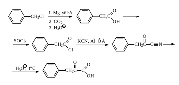 2-Оксо-3-фенилпропановую кислоту можно получить из толуола другим способом: