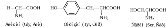 б) Двадцать -аминокислот, включаемых в определенной последовательности (закодирована последовательностью оснований в информационной РНК) в состав белков в процессе биосинтеза в рибосомах, называются генетически кодируемыми аминокислотами. Кроме перечисленных в пункте а) незаменимых -аминокислот к генетически кодируемым относят еще двенадцать -аминокислот: глицин, тирозин, серин, глутаминовую кислоту, аспарагиновую кислоту, аланин, аргинин, гистидин, цистеин, пролин, аспарагин, глутамин.