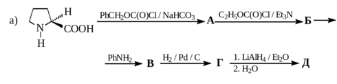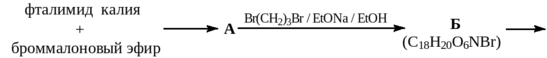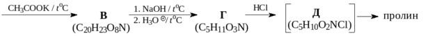 Приведите структурные формулы промежуточных продуктов в следующем синтезе D,L-пролина.