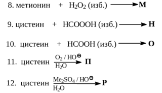 С помощью каких качественных реакций можно визуально различить следующие пары аминокислот: а) цистеин и серин; б) серин и тирозин; в) саркозин и -аланин; г) -аланин и -аланин, д) пролин и триптофан.