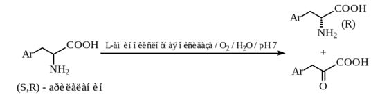 Разделение рацемических аминокислот можно осуществить с помощью метода селективного окислительного дезаминирования с использованием ферментов оксидаз:
