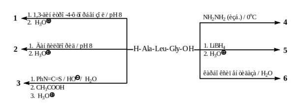 Трипептид Ala-Leu-Gly введен в следующие реакции: