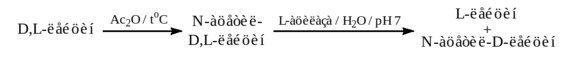 Синтетический ()-лейцин можно расщепить на оптические антиподы (L- и D-лейцин) при помощи хирального фермента ацилазы, выделенного из почек свиньи. Этот фермент избирательно катализирует гидролиз амидных связей L-аминокислот.