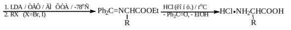 Перспективный метод синтеза -аминокислот заключается в алкилировании основания Шиффа, получаемого из этилового эфира глицина и бензофенона.