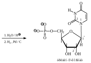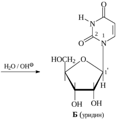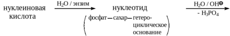 При гидролизе нуклеотидов водной щелочью образуется нуклеозид и фосфорная кислота.