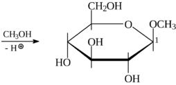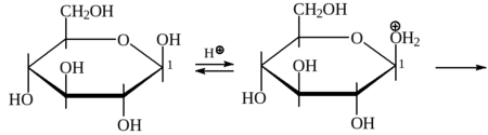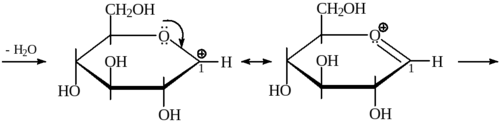 Кислый катализатор может, конечно, протонировать несколько из шести атомов кислорода, т. к. каждый из них основен, имея свободные пары электронов. Однако протонирование только гидроксильного кислорода при атоме С-1 ведет после потери воды к резонансно стабилизированному еарбокатиону.