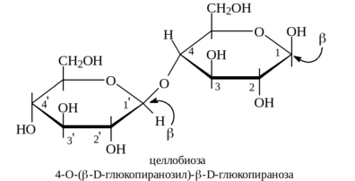 37. Целлобиоза отличается от мальтозы только -конфигурацией при атоме С-1 в левой глюкозной части. Все другие структурные особенности идентичны, включая связывание атома С-1 левой части с гидроксильной группой при атоме С-4 правой части молекулы.