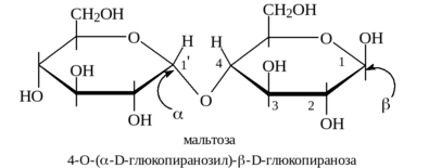Аномерный углерод в правой глюкозной части является полуацетальным. Естественно, что в растворе мальтозы существует равновесная смесь полуацетальной и открытой альдегидной форм. Поэтому мальтоза дает положительный тест Толленса, а также другие реакции, характерные для аномерного атома углерода в глюкозе.
