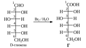 Г– продукт окисления D-глюкозы по атому углерода С-1 – D-глюконовая кислота (относится к семейству глюконовых кислот).