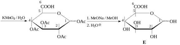 Е– продукт окисления D-глюкозы по атому углерода С-6 – D-глюкуроновая кислота (относится к семейству уроновых кислот).