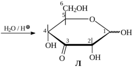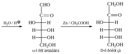 Это происходит потому, что равновесная смесь - и -аномеров глюкозы имеет удельное вращение [] = + 52o, а смесь аномеров D-фруктозы – большое отрицательное значение [] = – 92o.