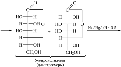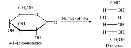 -D-Глюконолактон также восстанавливается в данных условиях до D-глюкозы.