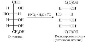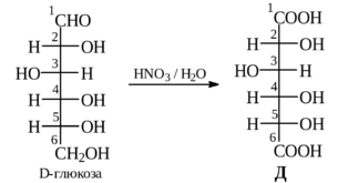 Д– продукт окисления D-глюкозы по атомам углерода С-1 и С-6 – D-глюкаровая кислота (относится к семейству глюкаровых кислот).