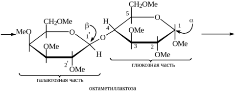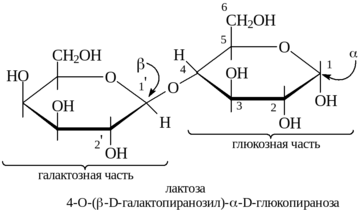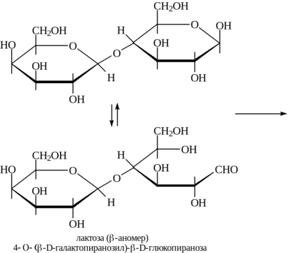 38. Аномерный атом углерода в галактозе имеет -конфигурацию при атоме С-1 и связан с гидроксильной группой при атоме С-4 глюкозной части. Кристаллический аномер, который имеет -конфигурацию в глюкозной части, делают в промышленном масштабе из сырной сыворотки.