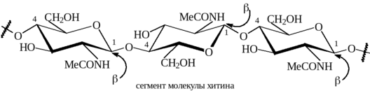 В щелочной среде происходит деацетилирование хитина с образованием полимера – хитозана. В кислой среде происходит медленный гидролиз хитина (и хитозана) с образованием 2-амино-2-дезокси-D-глюкозы (это промышленный метод ее получения). Гидролиз хитиновых покровов панцирей крабов дает D-глюкозамин с выходом около 70%.