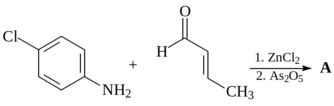 45. Укажите реагенты и условия синтеза замещенного хинолина А реакцией Дебнера-Миллера.