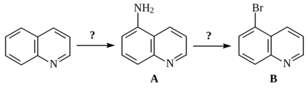 48. Синтезируйте 6-бромхинолин (А) из анилина и глицерина.