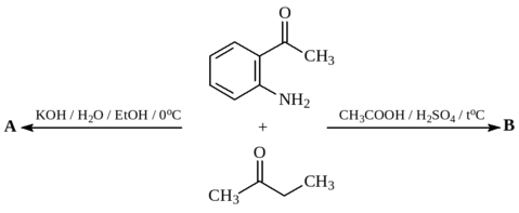 51. Взаимодействие орто-ацетиланилина с метилэтилкетоном (реакция Фридлендера) в зависимости от условий может давать изомерные хинолины А или В. Приведите структуры этих хинолинов.