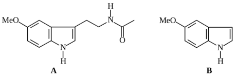 61. Гормон мелатонин (А) участвует в контроле смены дневного и ночного ритмов физиологических функций. Синтезируйте это соединение, применив в качестве исходных соединений 5-метоксииндол (В), бромистый этил, хлорацетонитрил и уксусный ангидрид. Предварительно получите 5-метоксииндол (В) из п-анизидина (п-метоксианилина), этилового эфира пировиноградной (2-оксопропановой) кислоты и других необходимых реагентов.
