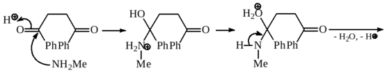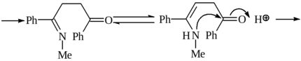 Схема механизма генерирования пиррольного кольца реакцией Паля-Кнорра.