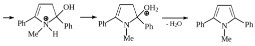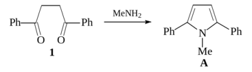 Синтез пиррола А по Паалю-Кнорру проводят при комнатной температуре; в качестве растворителей можно использовать H2O, ROH, RCOOH, C6H6 (катализ п-толуолсульфокислотой).