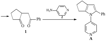 13. Получение пиррола А из циклопентанона, пиридина, пирролидина и -бромацетофенона.