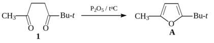 Синтез 2-трет-бутил-5-метилфурана (А) по Паалю-Кнорру.