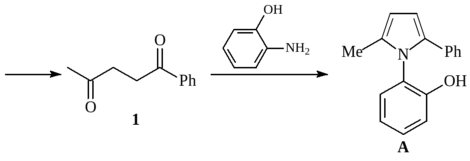 10. Получение 1-метил-2,5-дифенилпиррола (А) из метиламина, этилбензоата и этилацетата.