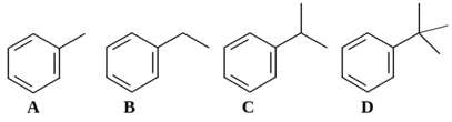 37. Расположите следующие соединения в ряд по увеличению реакционной способности в реакции радикального бромирования.
