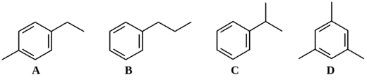 42. Соединение C9H12 содержит в спектре ЯМР 1Н дублет с 1.22 м. д., септет с 2.83 м. д. и мультиплет с 7.09 м. д. Какая из приведенных ниже структур соответствует этим данным?
