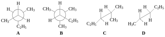 2. Какая из следующих конформационных структур является 2-метилпентаном?
