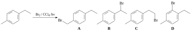 38. Выделите соединение, которое не образуется в следующем свободно-радикальном бромировании.