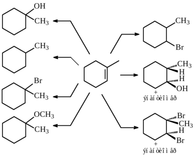 60. Какие реагенты и условия A-G подходят для каждого из указанных превращений 1-метилциклогекс-1-ена?