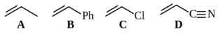 90. Расположите следующие соединения в порядке увеличения скорости катализируемой кислотой полимеризации, считая, что протон во всех случаях реагирует с двойной связью.