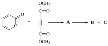 124. Сколько изомерных циклогексенов должно получиться в реакции Дильса-Альдера диена A и диенофила B (не учитывая энантиомеров)?