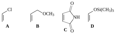E) Расположите диенофилы в ряд по увеличению реакционной способности в реакции с диеном.