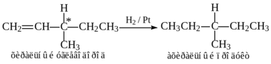 4848. Исходным хиральным углеводородом С6Н12, который в результате каталитического гидрирования дает ахиральный продукт С6Н14, является D) 3-метилпент-1-ен.