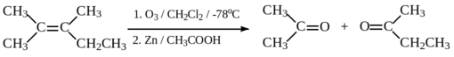 71. Структура алкена, который при озонолизе дает ацетон и метилэтилкетон – 2,3-диметилпент-2-ен.
