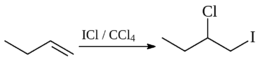 5656. Электрофильной частицей является I+, так как атом хлора более электроотрицателен. Электрофильный реагент I+ будет атаковать двойную связь таким образом, чтобы образовался более стабильный вторичный карбокатион.