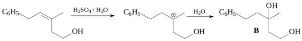 2. Нуклеофилом здесь является вода. Дегидратации спирта не происходит, так как серная кислота разбавленная.