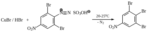 3. Замена диазогруппы на бром (реакция Зандмейера).