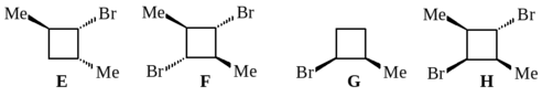 21. Приведите формулы всех изомеров с молекулярной формулой С6Н12, которые содержат циклобутановое кольцо. Укажите в их ряду: 1) цис- и транс-изомеры, 2) хиральные соединения, 3) ахиральные соединения, 4) мезо-соединения, 5) энантиомеры, 7) диастереомеры.